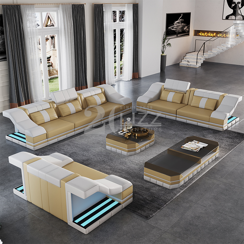 Lizz Furniture الحديثة الفاخرة الأريكة / أريكة خيار متفوق تماما لتصميم منزلك. تتميز هذه الأريكة الرائعة بأضواء LED، والتي لا تقوم فقط بإضافة هواء من الفخامة إلى القطعة وغرفتك، ولكنها توفر أيضا مكانا أكثر راحة للإعداد أثناء الاسترخاء مع عائلتك.