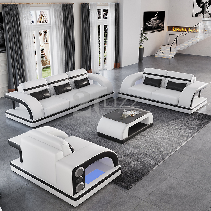 مريح 1 + 2 + 3 أريكة غرفة المعيشة بيضاء وأسود